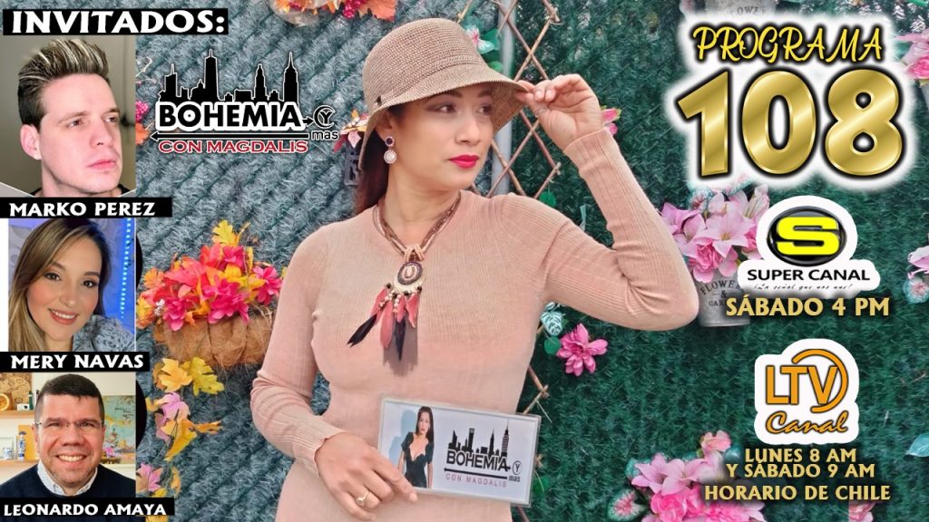 No te pierdas este sábado 19 de marzo Bohemia y más con Magdalis, a traves de Super Canal 3pm, este lunes a las 8am este lunes 21 de febrero y los martes 9am LTV canal en Chile. O por nuestro canal de youtube y página web